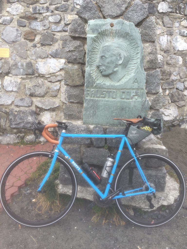 I visit the plaque the the Italian champion Fausto Coppi, and replenish myself at one of the many restaurants.