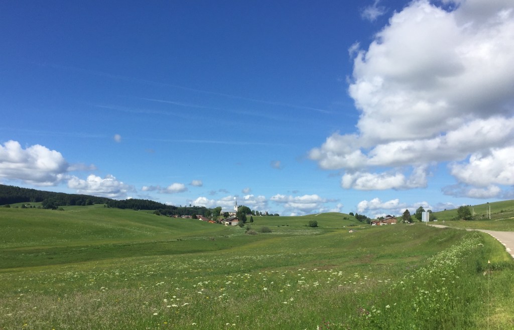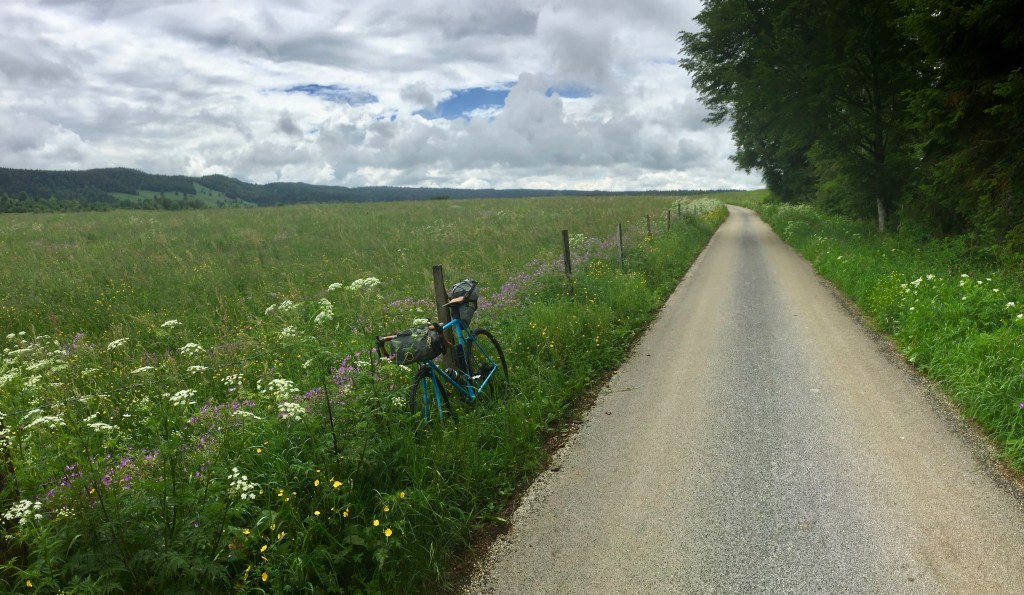 The Jura Mountains rise along the France-Switzerland border and separate the great river basins of the Rhine and Rhône. High sub-alpine plateaus of fossil bearing and folding limestone, dotted with lakes and colourful wildflowers, and slopes of oak, beech, spruce, and sycamore maples. I first heard of the Jura as a mecca for cross-country skiing. It’s verdant beauty, quiet roads and hearty food, make it a mecca for cycling too.