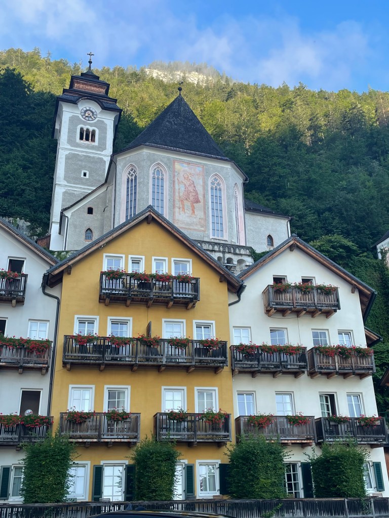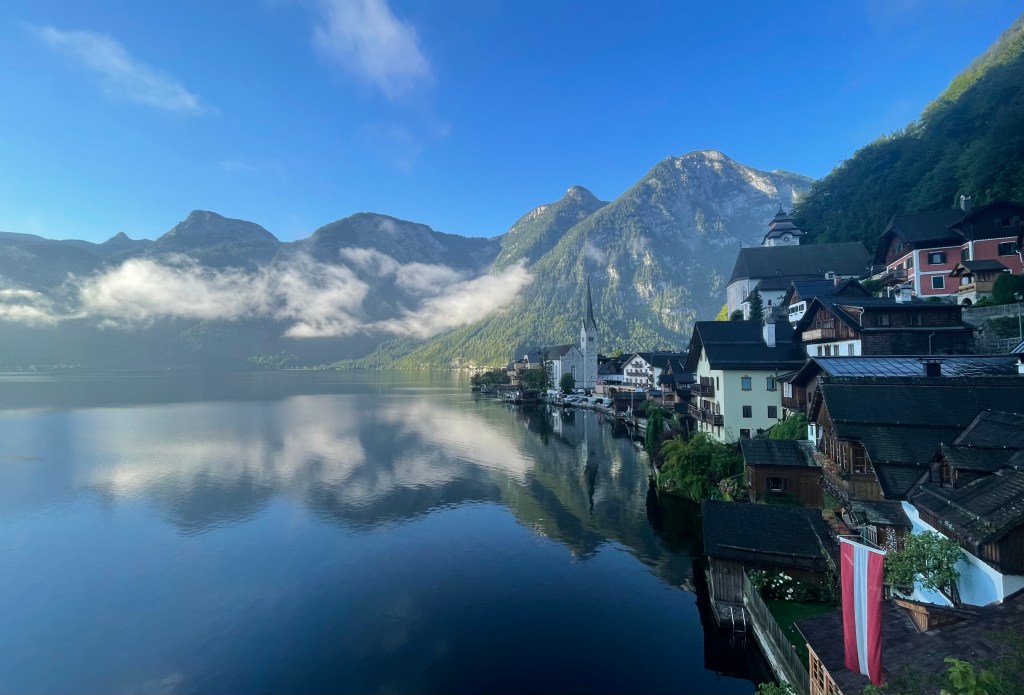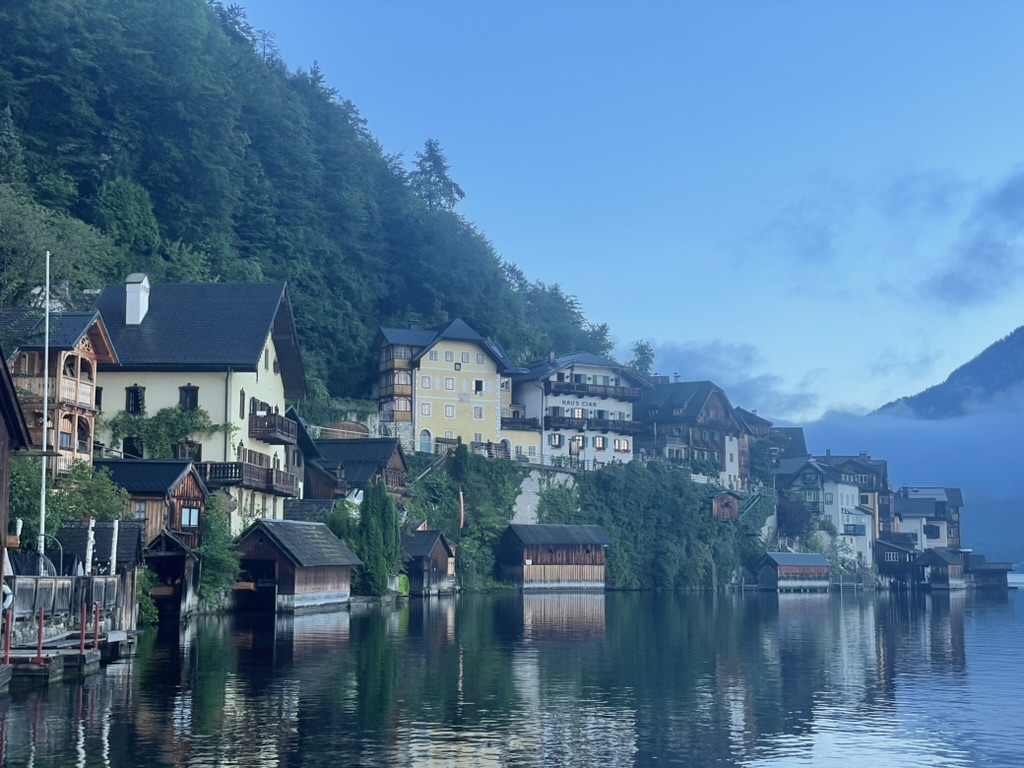 After our first ‘punch’, the fog lifted revealing a beautiful lake and the densely packed town of Hallstatt set against limestone cliffs.