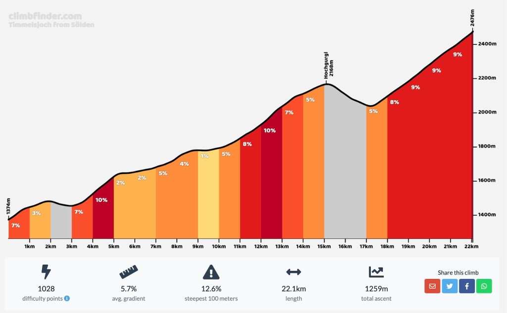 At the pass, we met a few other cyclists, one of whom had just completed the Ötztaler Radmarathon, one of the most challenging one-day amateur cycling marathons in the world – a 227 kms long and 5,500 m in elevation through four major Alpine passes. The fastest finish in under 7 hours!