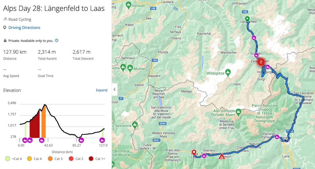 Day 28 (31st Aust) – Längenfeld to Laas.