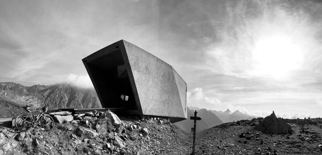 Perched above the col is the Pass Museum designed by Italian architect Werner Tscholl. Inside are exhibits of the area including an ice cave and a fibula from 300 BC. While the foundations are on the Austrian side, it cantilevers 16m into the Italian side, to emphasise the cross-border nature of the pass. It is meant to resemble a boulder jutting out from the landscape. Reminded me of a space-ship from a popular sci-fi movie.