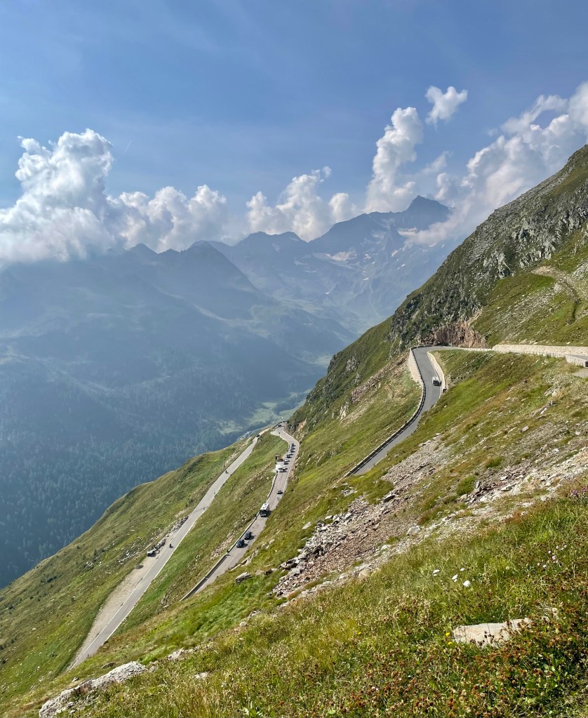 From the lofty heights of Timmelsjoch the views into Italy were again spectacular. We have had such a good run of beautiful weather.