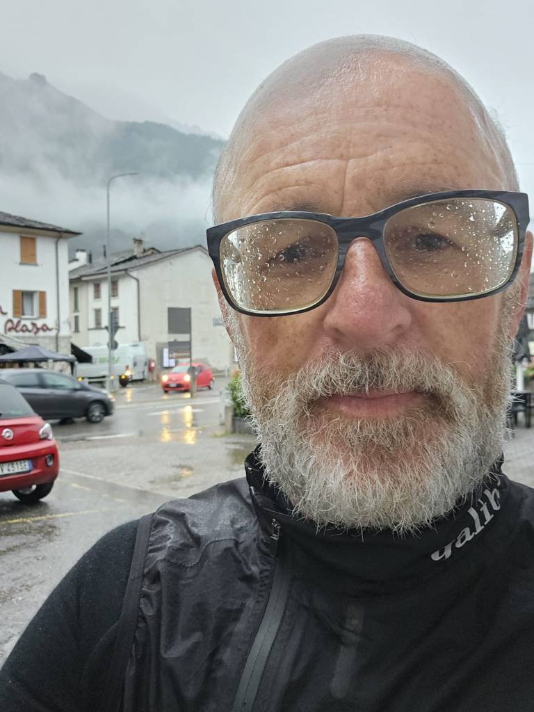 By the time we got to Chiavenna we were sodden, so took a double coffee and croissant break until the rain had passed.