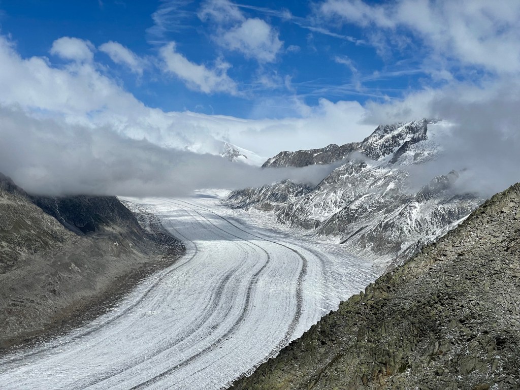 A perfect day for a cable car ride and a chance to see up close the Aletsch Glacier, the largest glacier in the Alps and the centrepiece of the Swiss Alps Jungfrau-Aletsch UNESCO World Heritage Site.