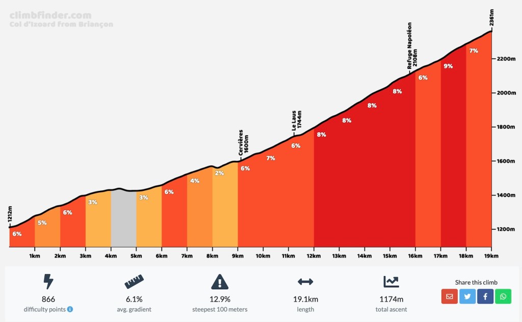 In this part of France the only options for getting to Barcelonnette were to go 200km via Italy and the 2,744m Colle d’Agnello plus the 1,996m Colle della Maddalena, or 120km back over the 2,360m Col d’Izoard and the 2,108m Col de Vars via Briançon.